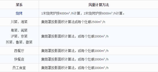 二、 計算出所需要的風量,確定油煙凈化器具體型號