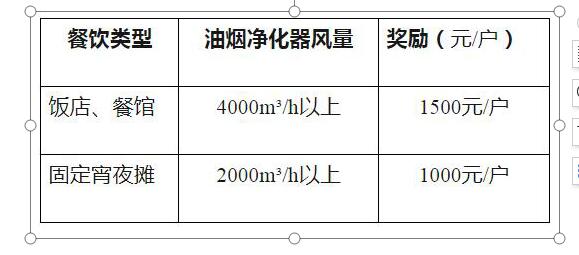 所安裝的油煙凈化器必須具有國家環保產品認證(CCEP認證)的品牌,并且達到餐飲業油煙凈化處理的國家排放標準,政府予以獎勵(獎勵標準附后)。